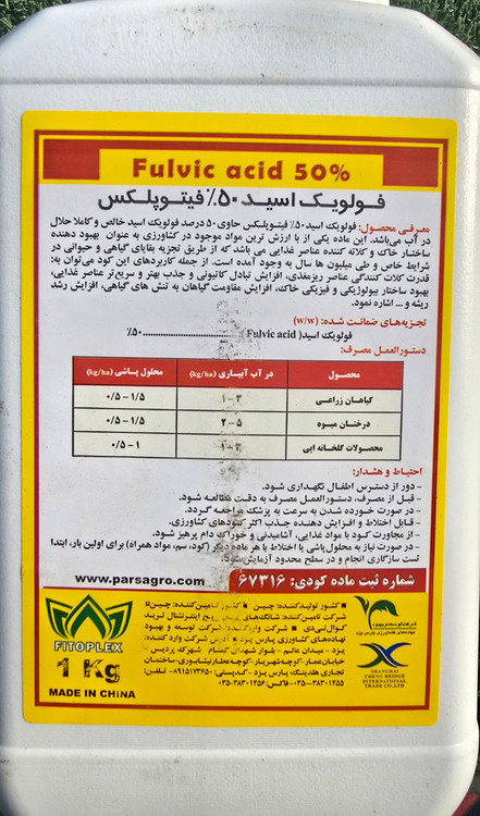 فولویک اسید 50 درصد (اصلاح کننده خاک) فیتوپلکس یک کیلویی
